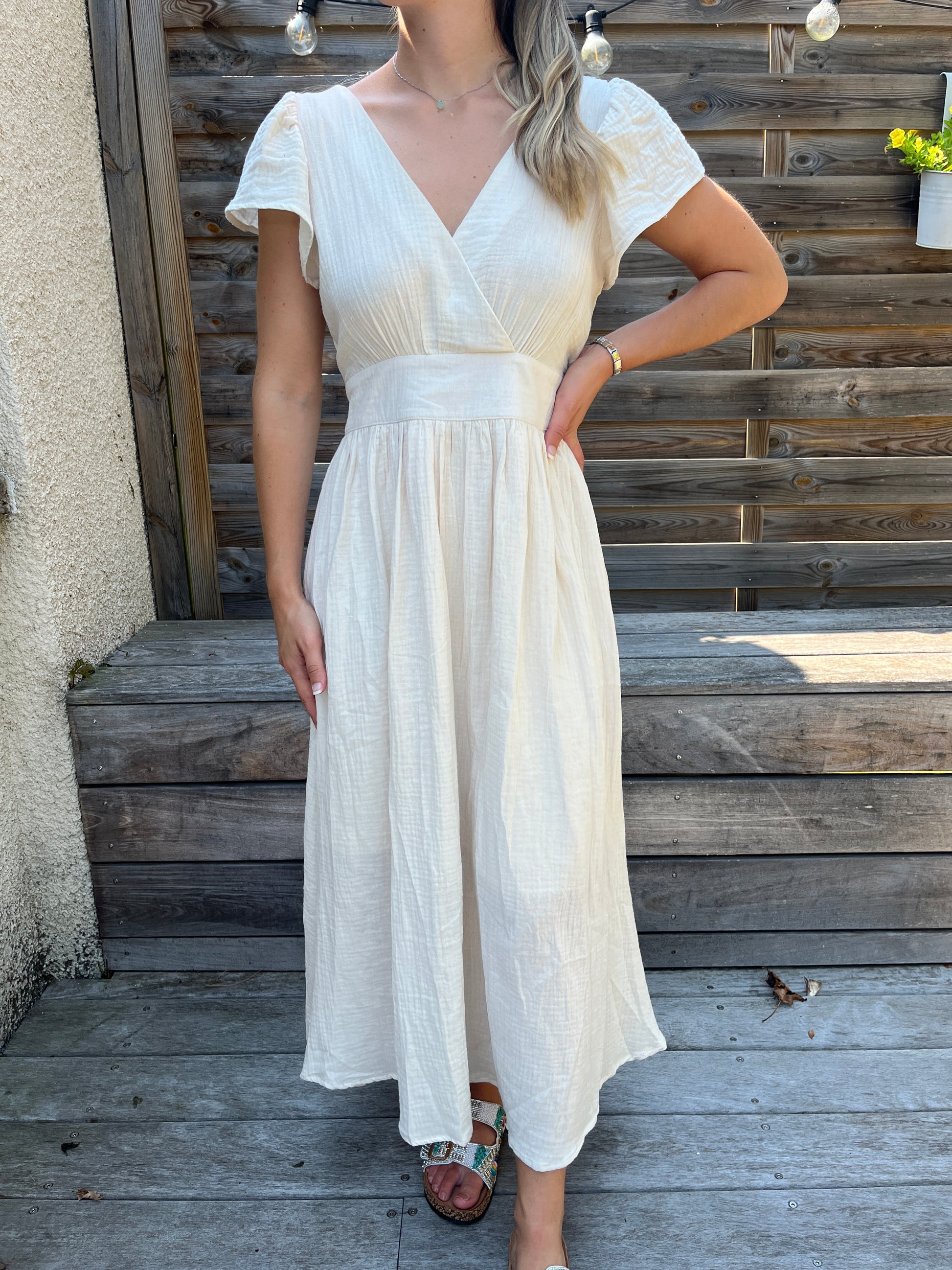 La robe Cléo est la pièce idéale pour celles qui veulent conjuguer confort, originalité et élégance, du brunch ensoleillé au dîner d'été.