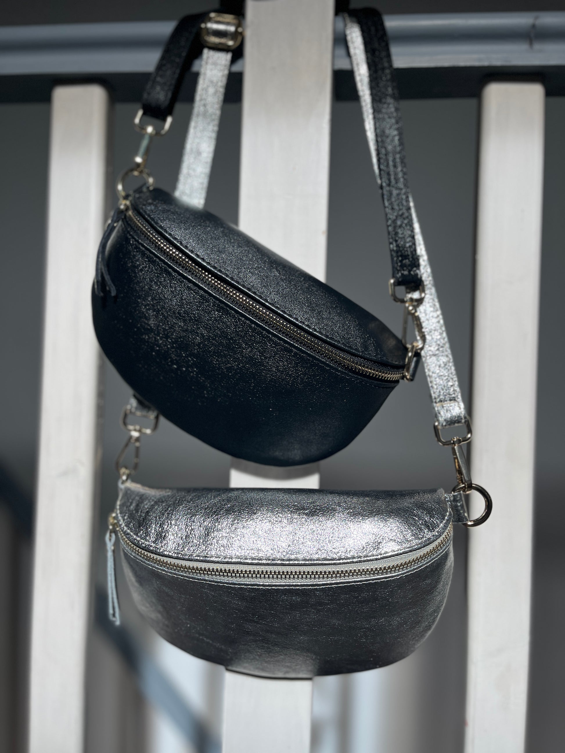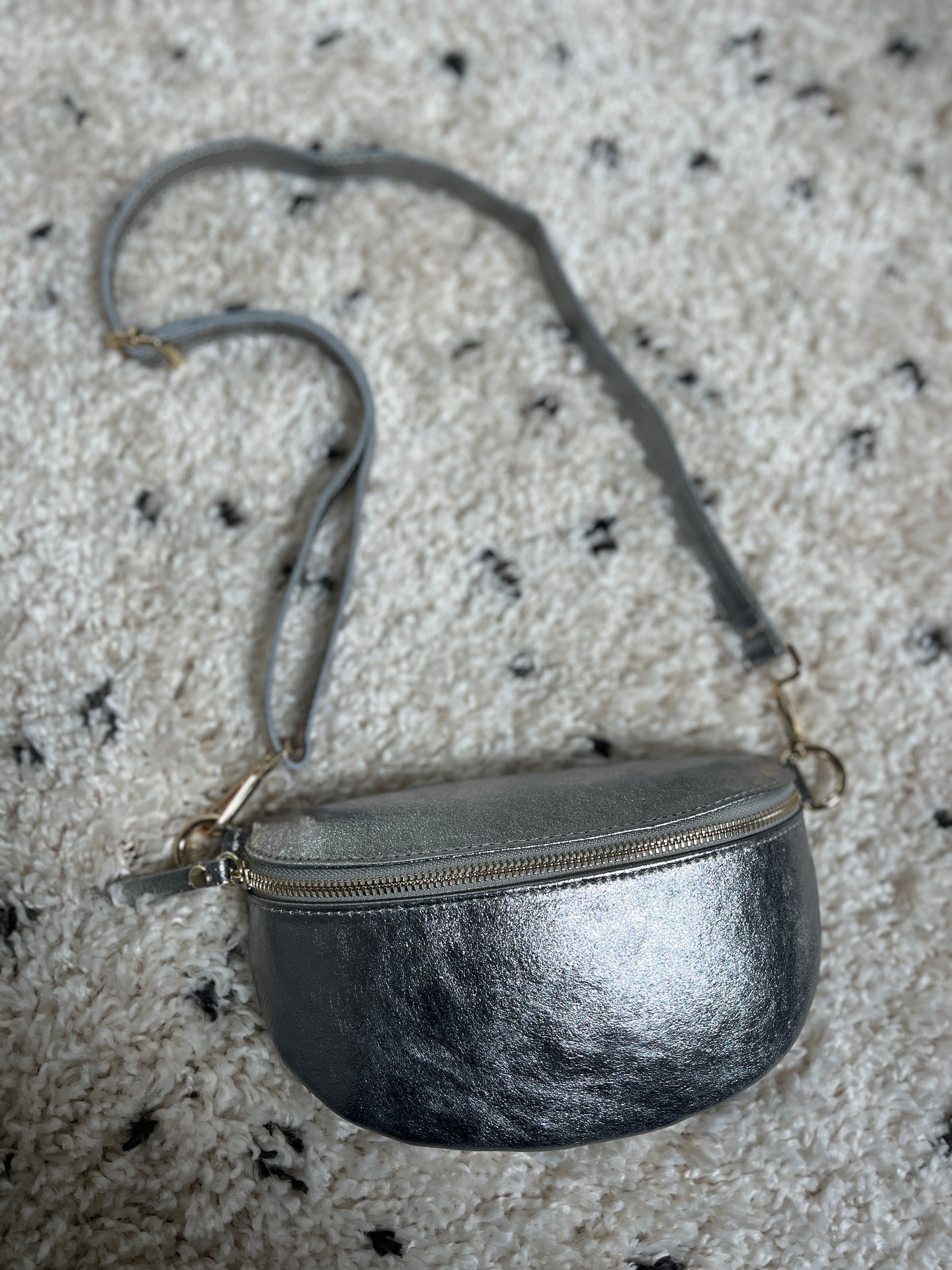 Sac banane en cuir argenté
