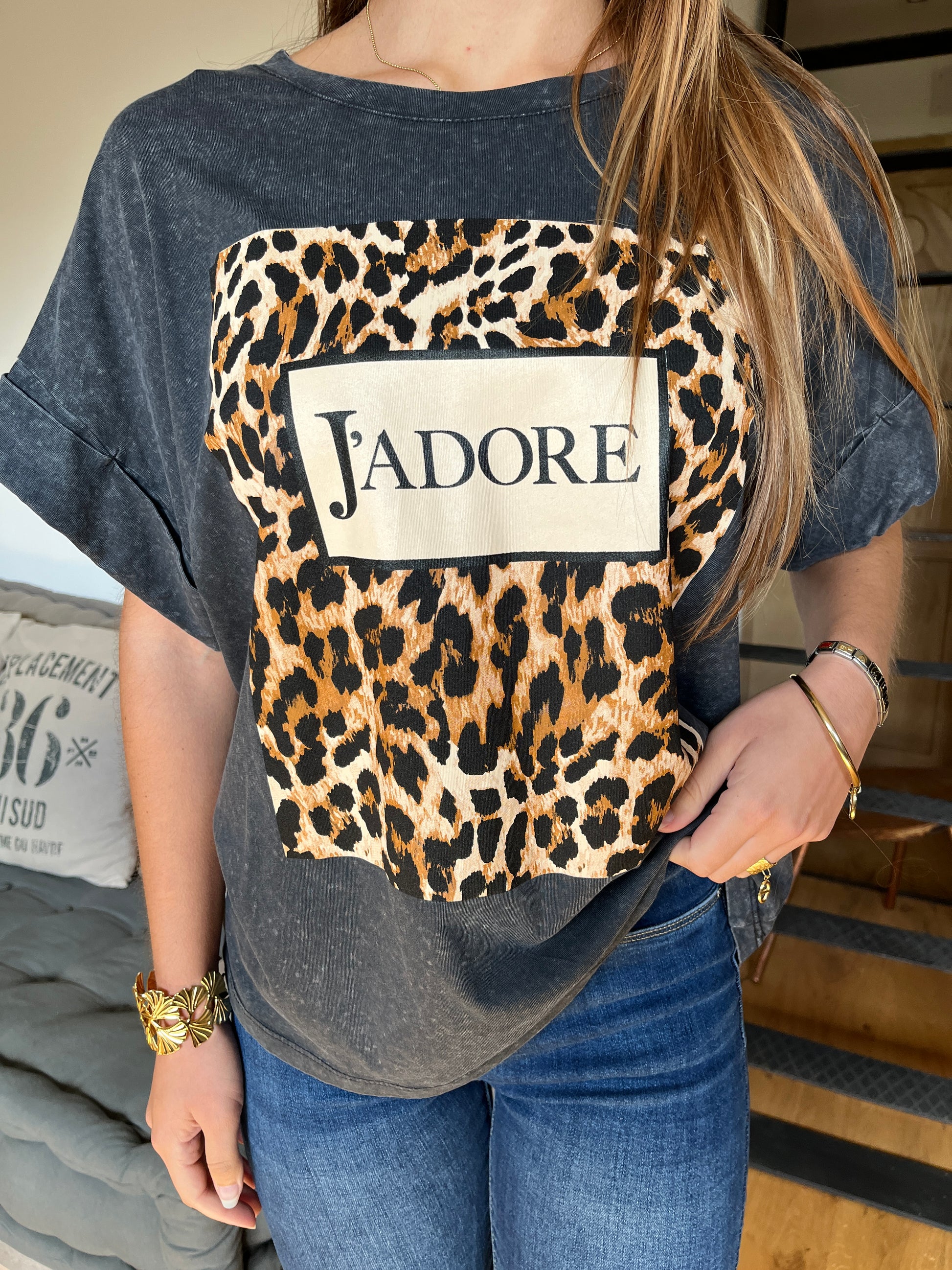 T-shirt gris anthracite avec imprimé léopard, l’imprimé ultra tendance pour donner une touche d’originalité à votre tenue