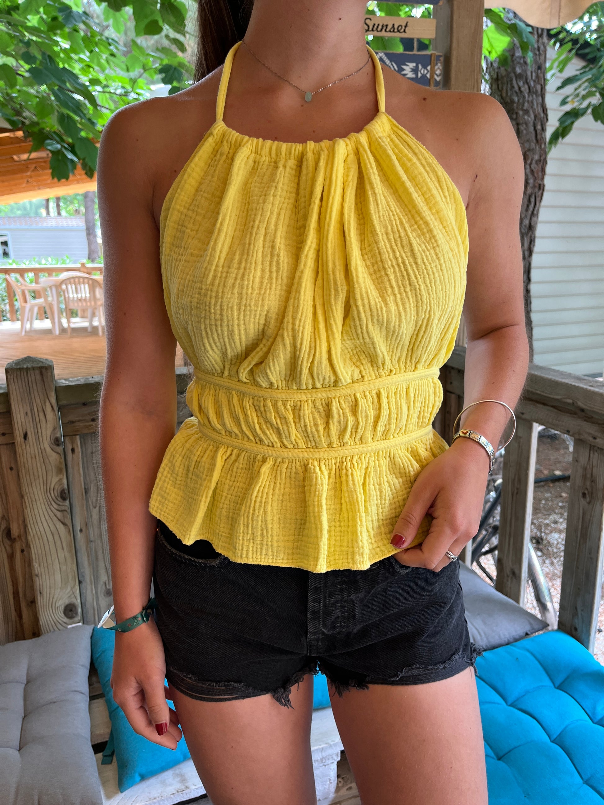 Top dos nu en gaze de coton uni à nouer autour du cou et derrière la taille