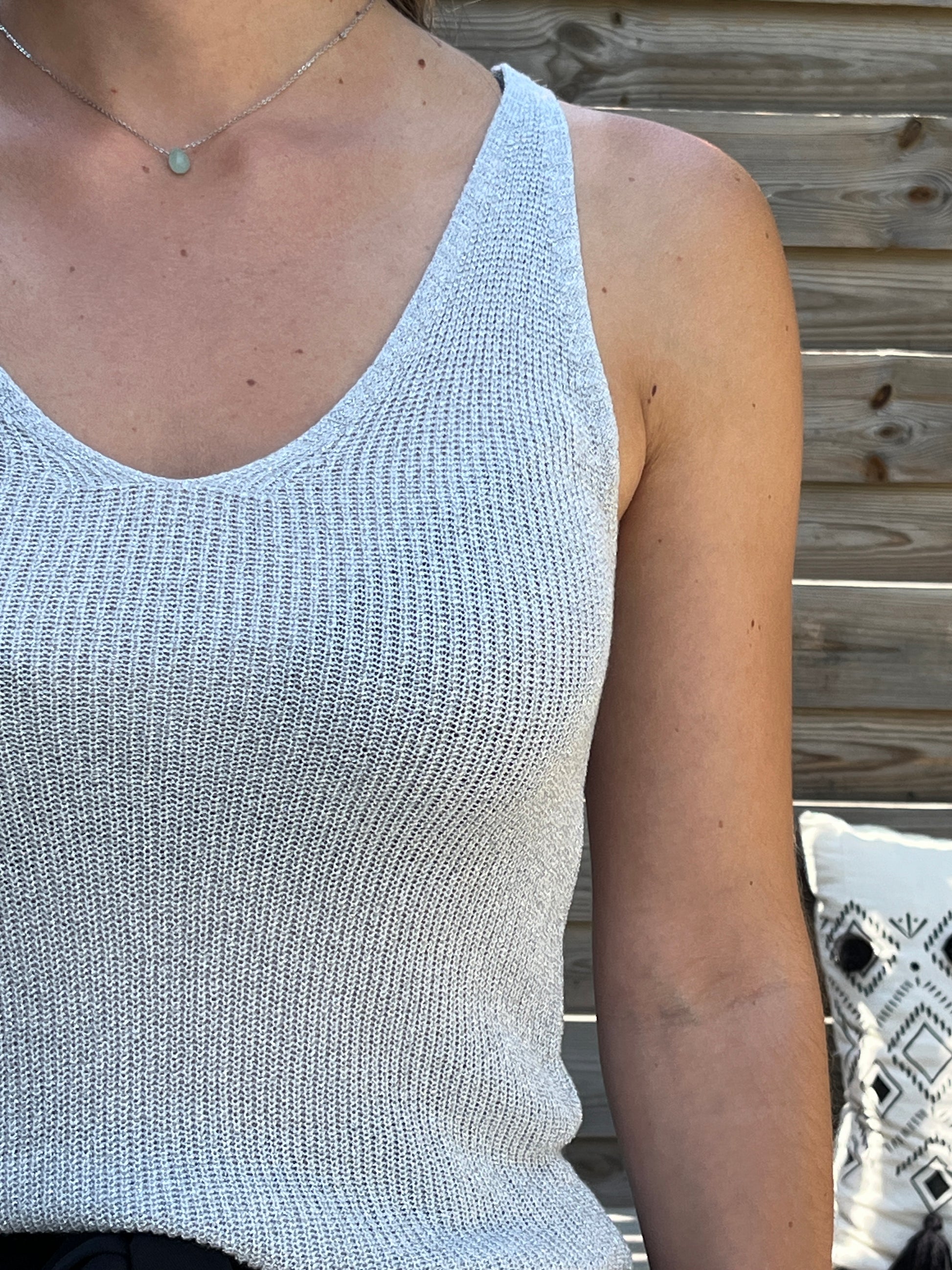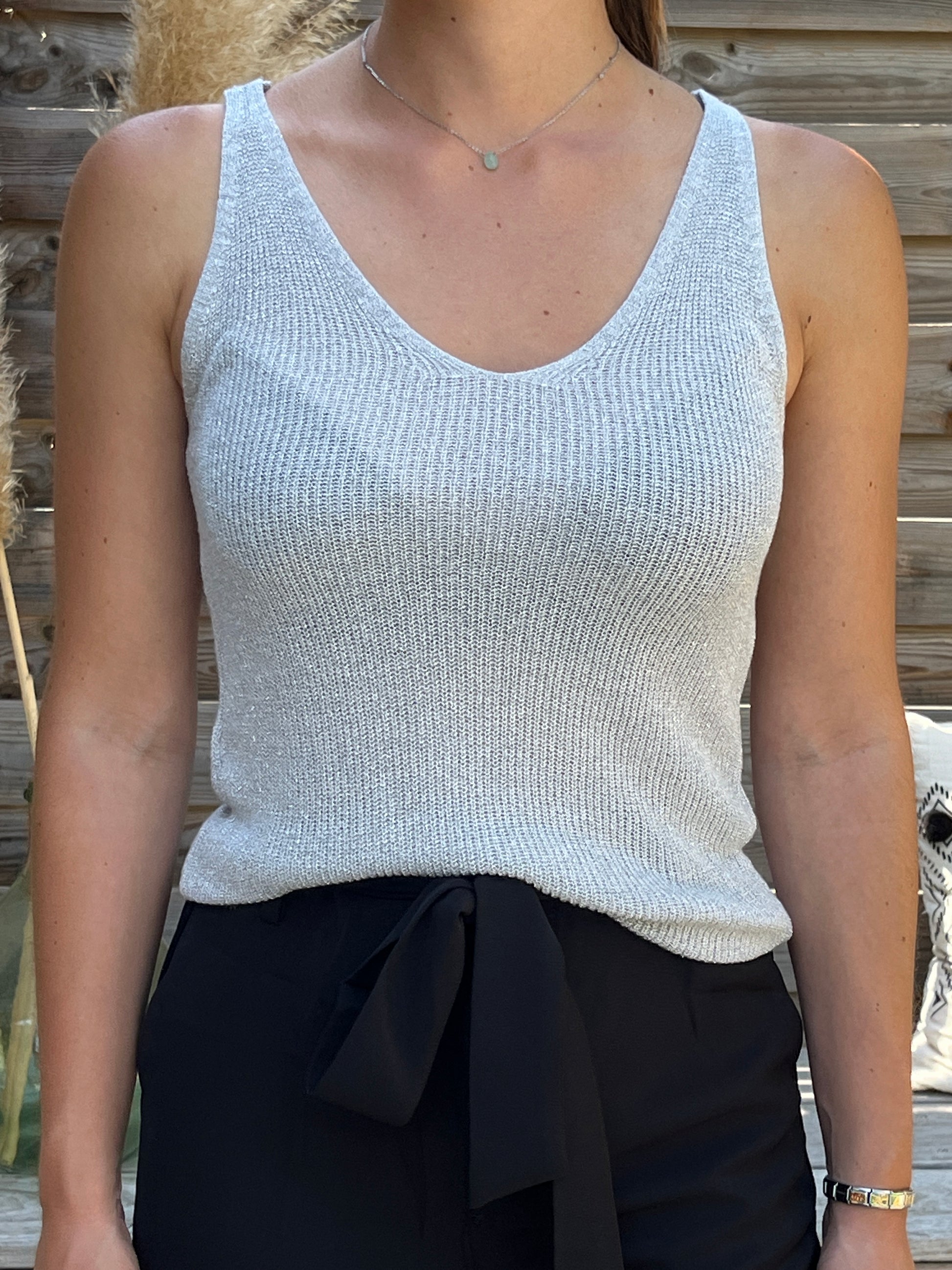 Top débardeur en viscose brillant, col V devant et derrière