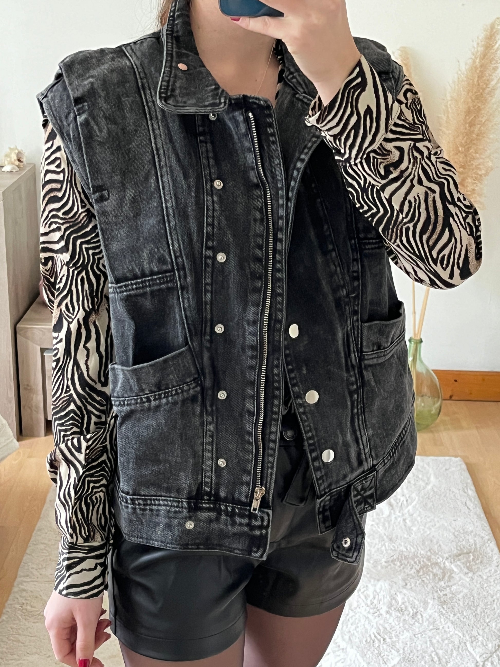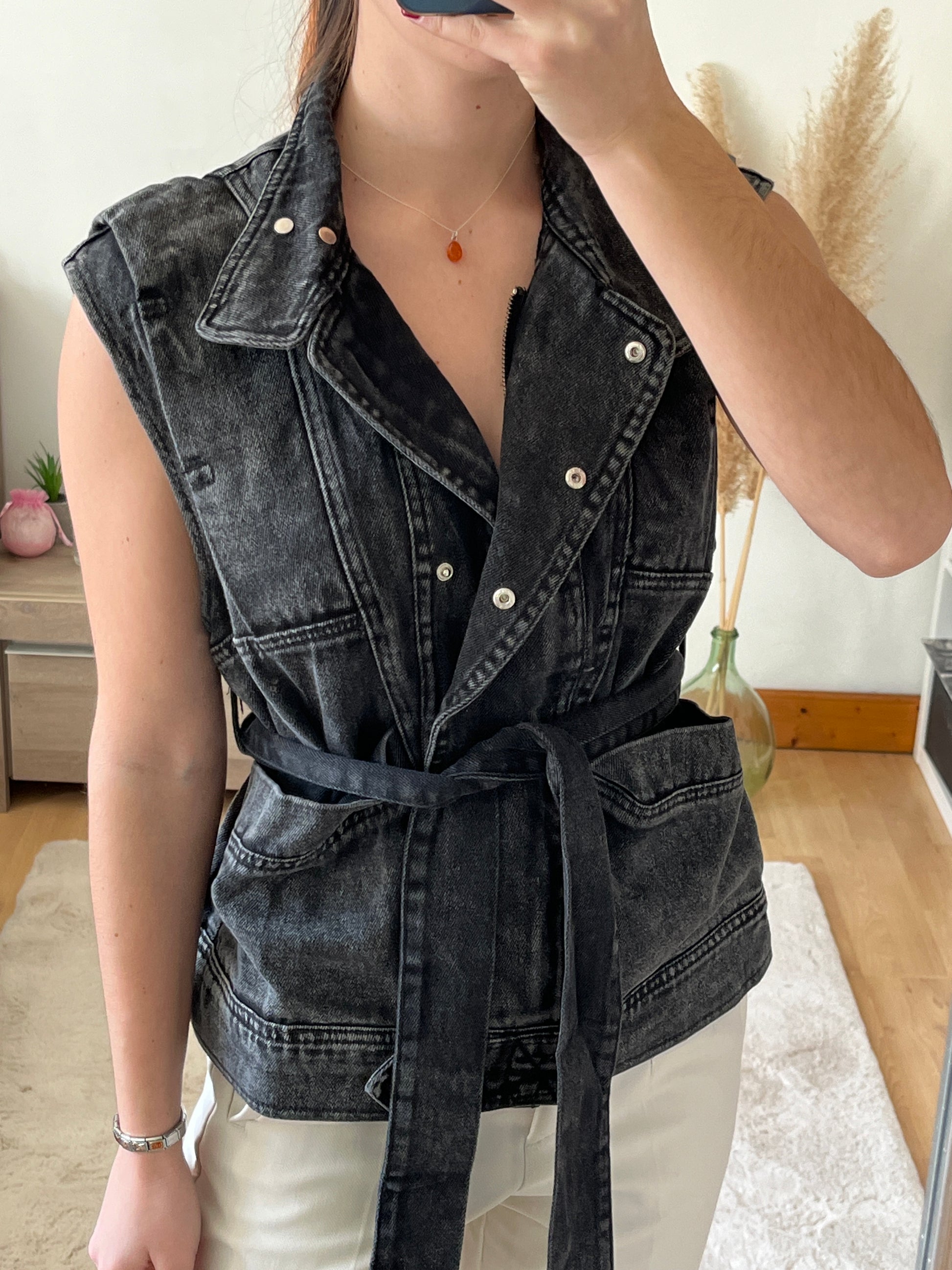 Fermeture zip à rabat. Poches latérales. Effet épaulette. Ceinture.