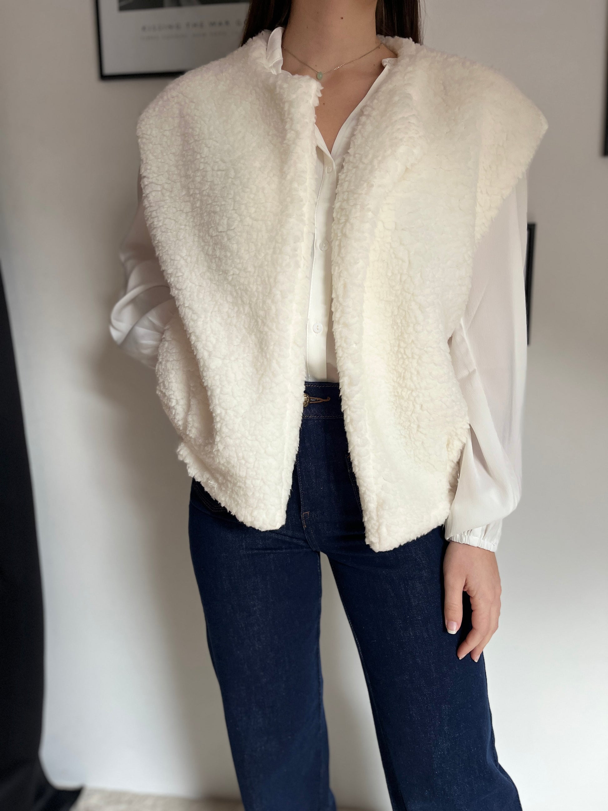 Veste moumoute écru avec doublure, parfaite pour look décontracté et tendance