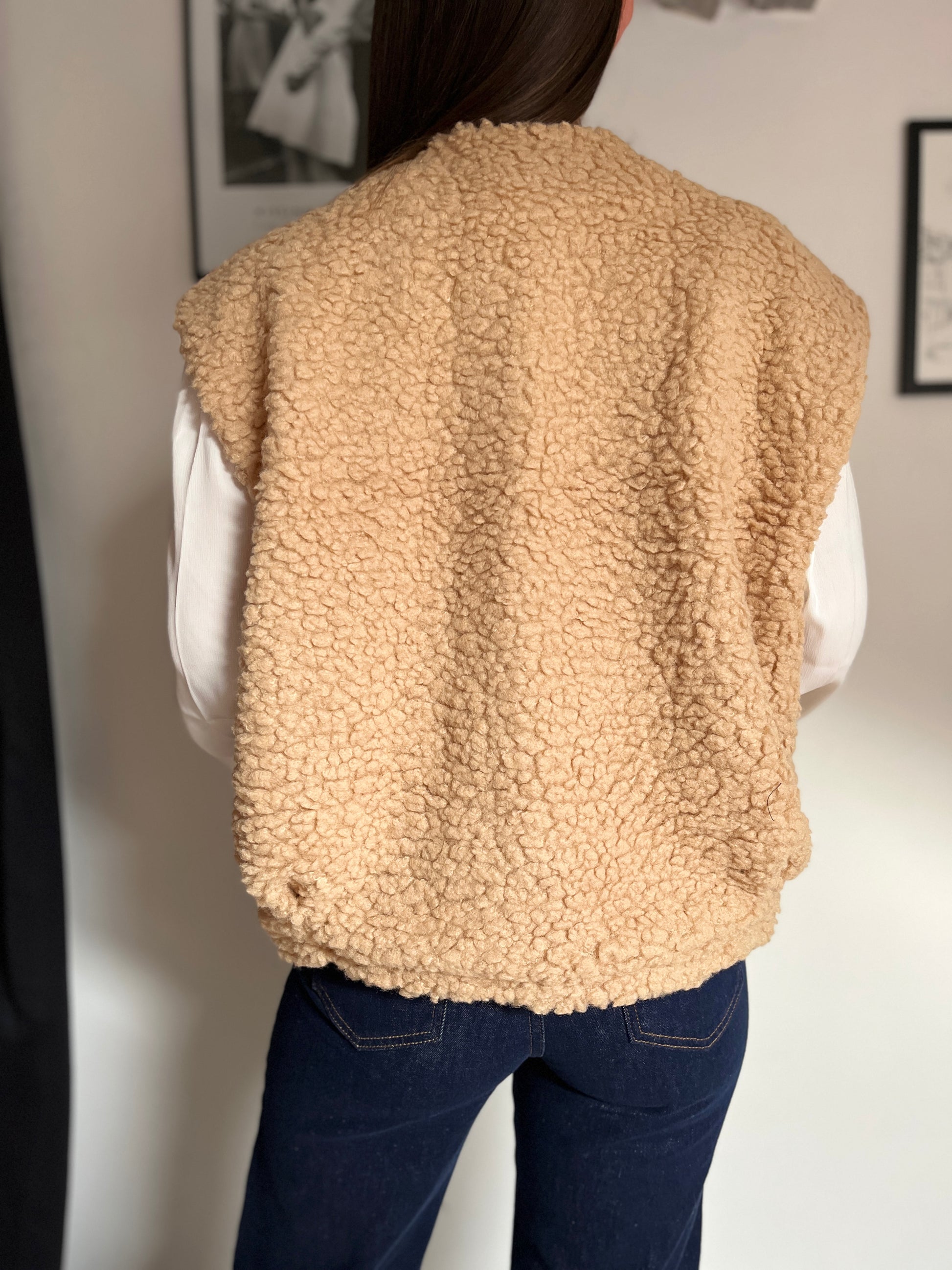 Veste moumoute beige avec doublure, parfait pour look décontracté et tendance